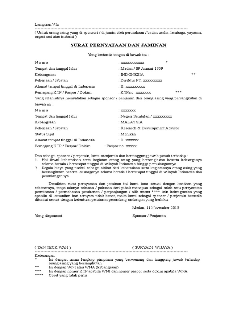. Demikianlah permintaan dan jaminan ini saya buat dengan sesungguhnya dan jika keterangan di atas tidak memenuhi tanggung jawab saya bersedia dituntut sesuai dengan ketentuan yang berlaku. Visa extemption yaitu pelancong tidak memerlukan visa apapun untuk memasuki indonesia selama dia berasal dari negara yang berada dalam daftar. Contoh surat jaminan perusahaan yang baik dan benar untuk pengurusan visa sebagai referensi pembuatan surat resmi yang dapat diunduh secara gratis.