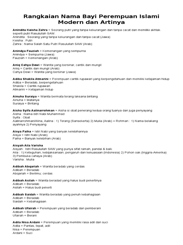 45 Rangkaian Nama Bayi Perempuan Islami Modern Beserta Artinya Kitabnamabayi Comkumpulan Arti Nama Bayi 2 3 Kata Unik Keren